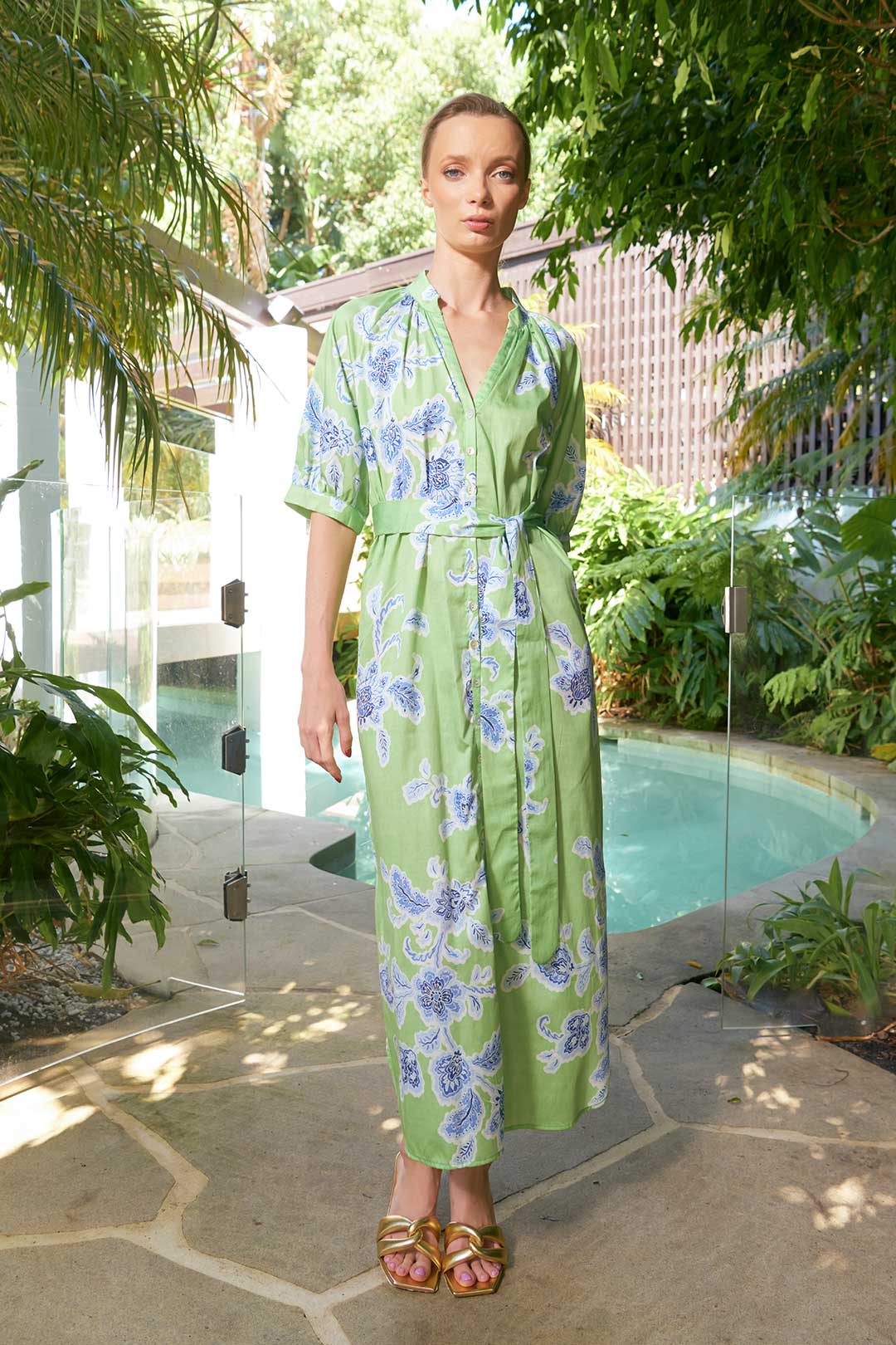 Please note: these images are from a pre-production shoot. The body hem has been updated to a placement print, as seen on the Clay Sundance Dress. Cut from midweight cotton with an exclusive print, the Taylor Sundance Ankle Dress features a classic collar and button placket. A curved side slit adds gentle movement and ensures ease and comfort. Dress Length: 132cm from shoulder high point to hem. Model height: 174cm. Composition: 100% CTN; Care: Cold hand wash with delicate detergent; No soaking