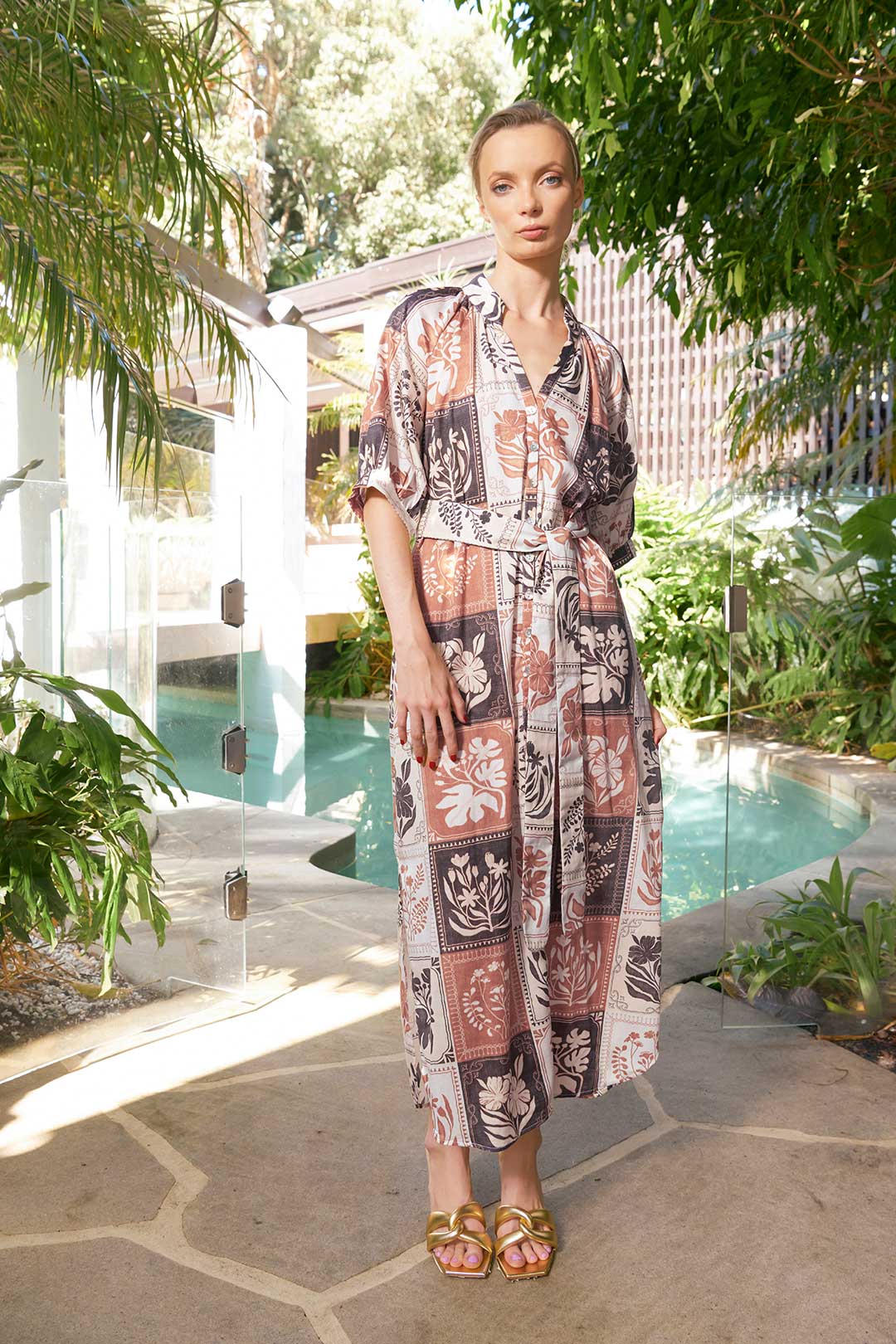 Taylor Botanical Ankle Dress - Cocoa